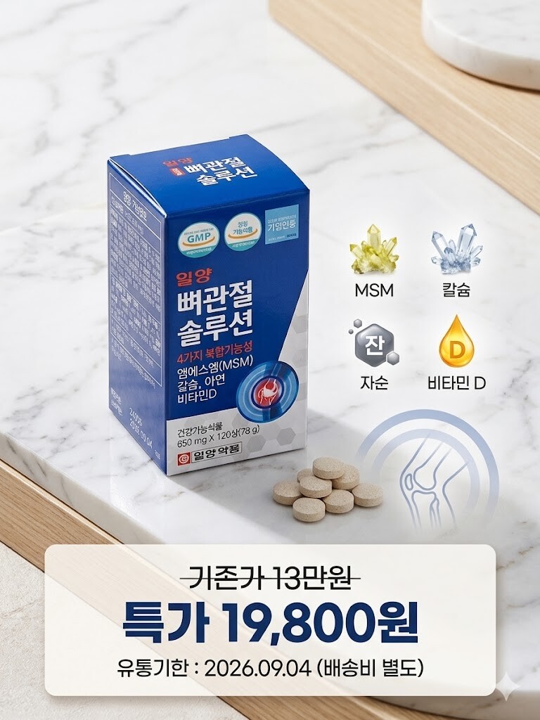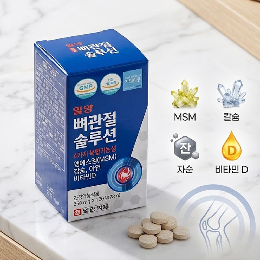 [임박특가] 일양 뼈관절 솔루션 MSM 칼슘 비타민D 관절 영양제 1병(120정)