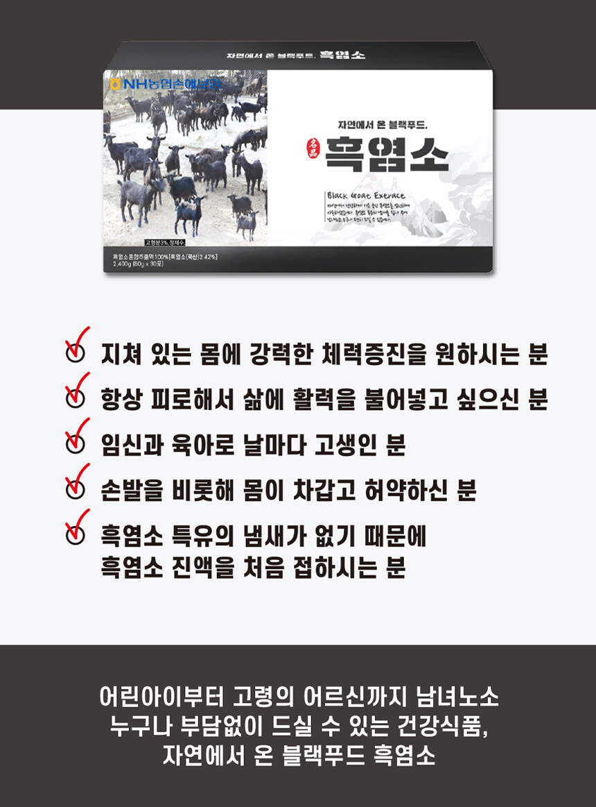 자연에서 온 블랙푸드 흑염소가 새로 리뉴얼 되어 출시 되었습니다.