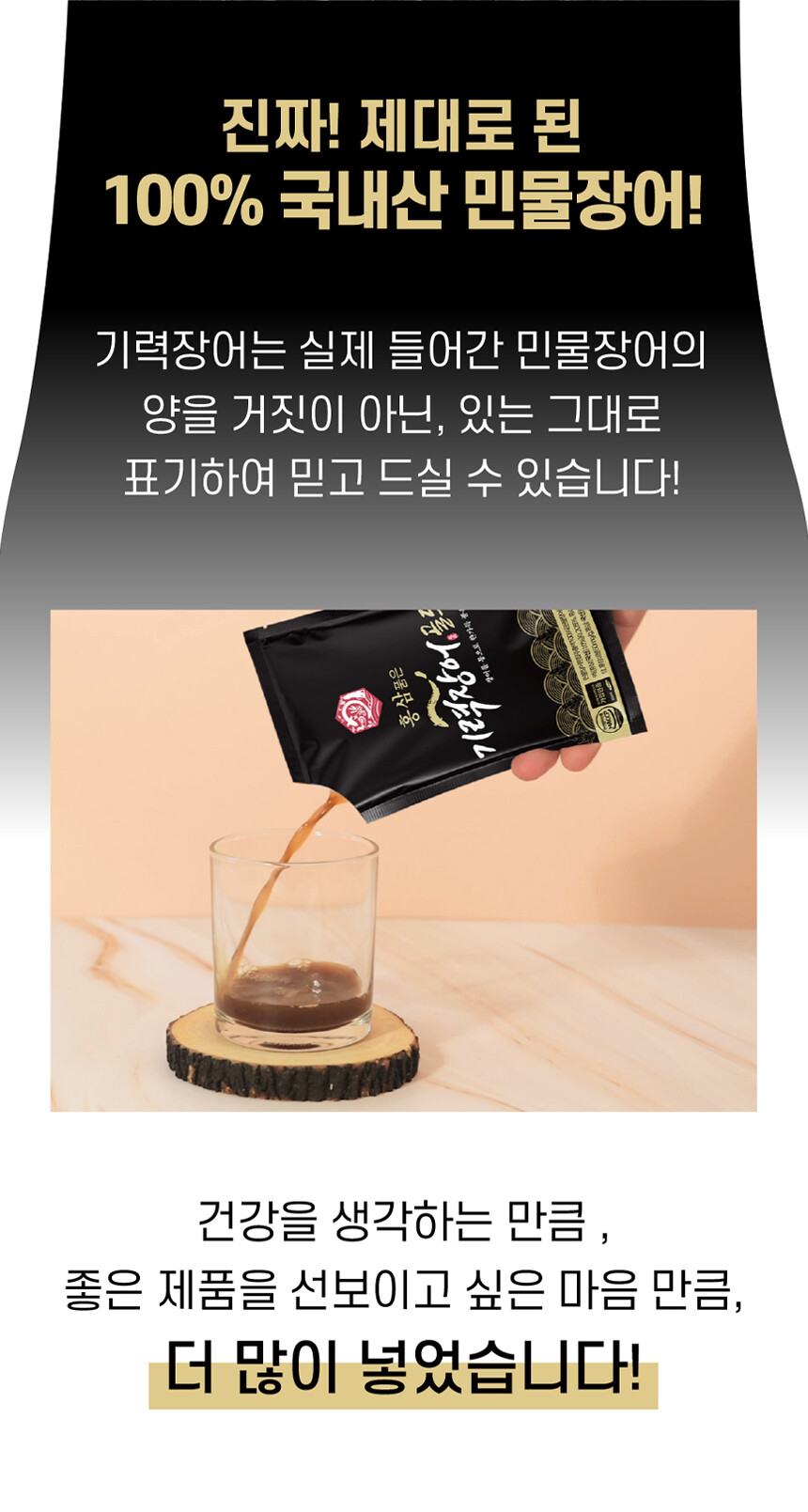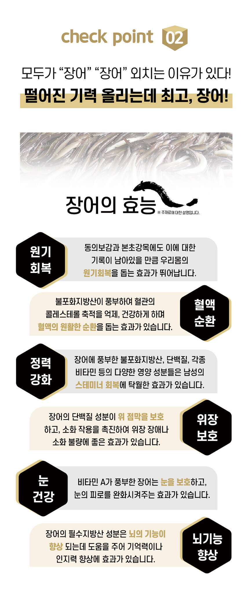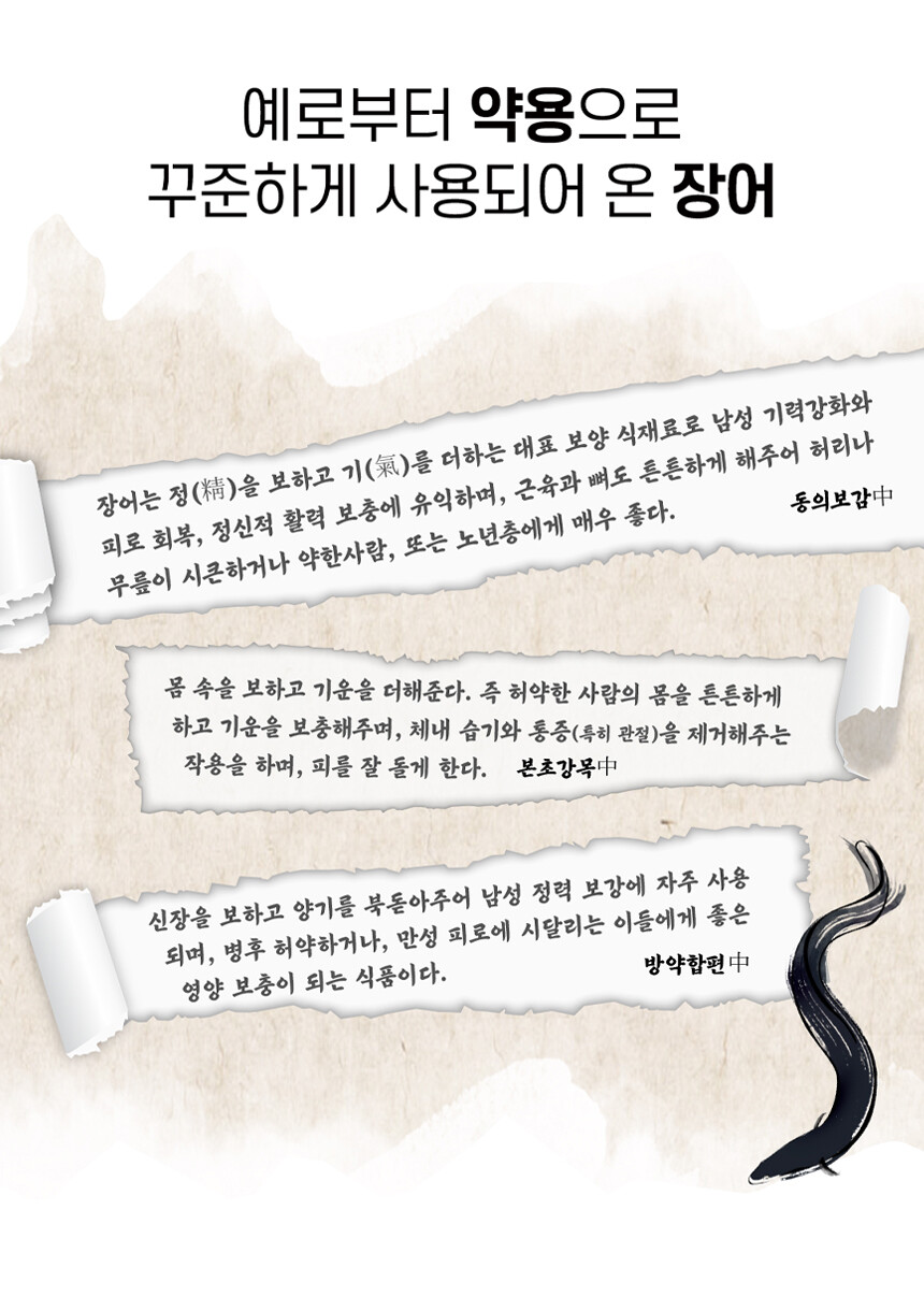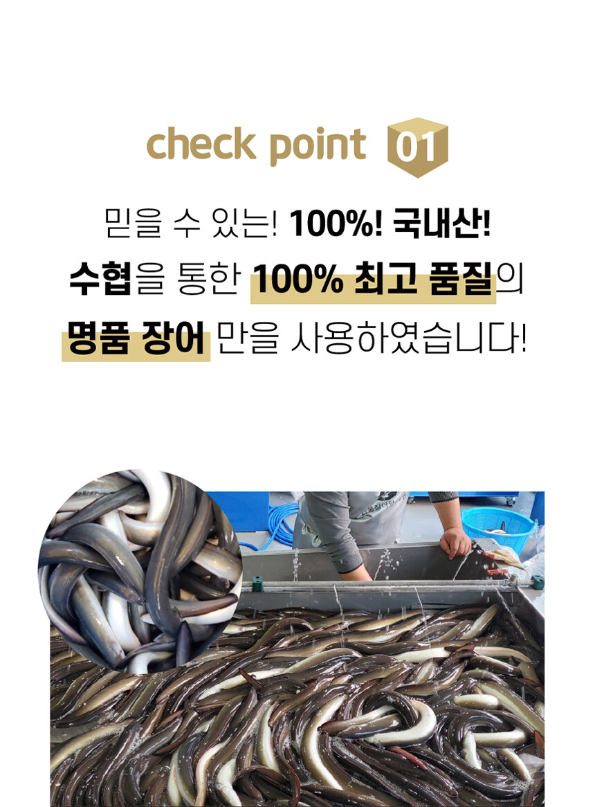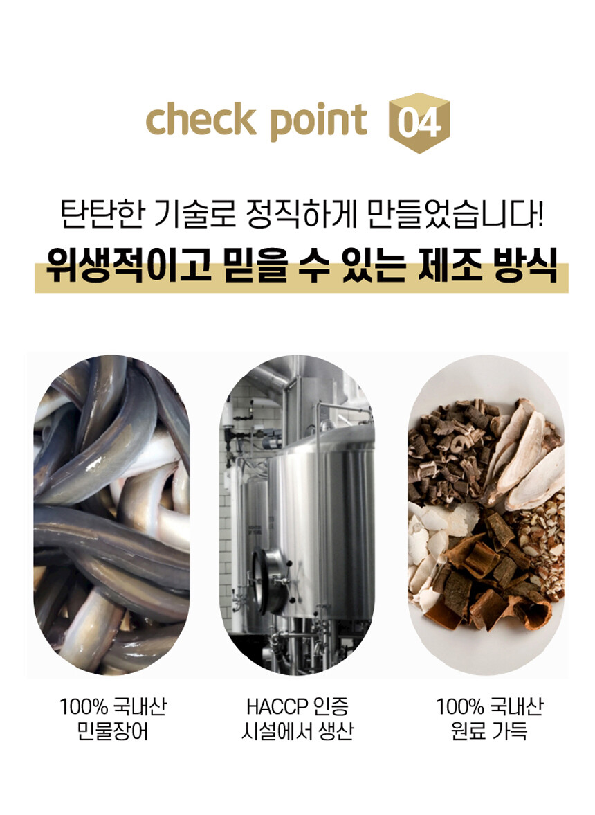 활력의 대명사 100% 국내산 민물장어에 국민 대표 건강식품 홍삼과 원기회복에 탁월한 흑마늘까지 더했습니다